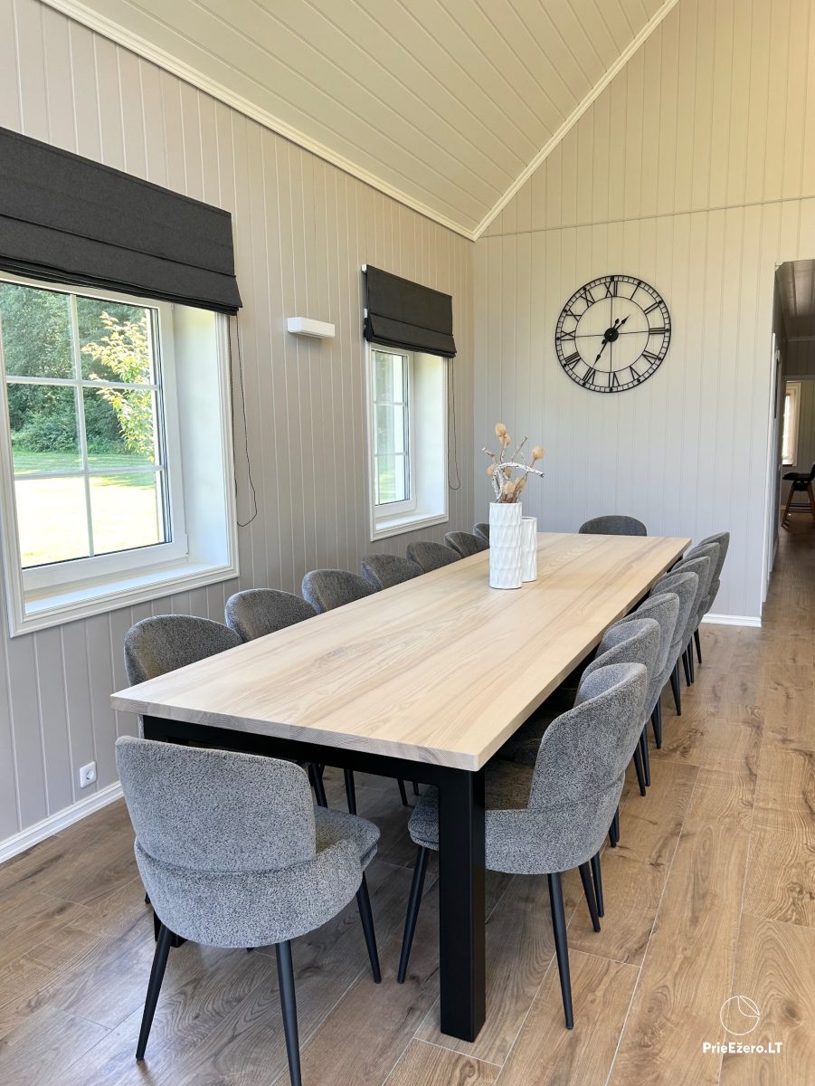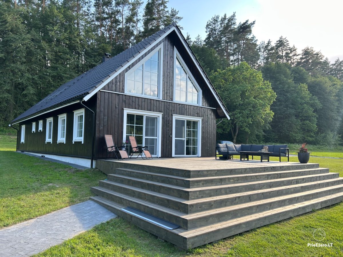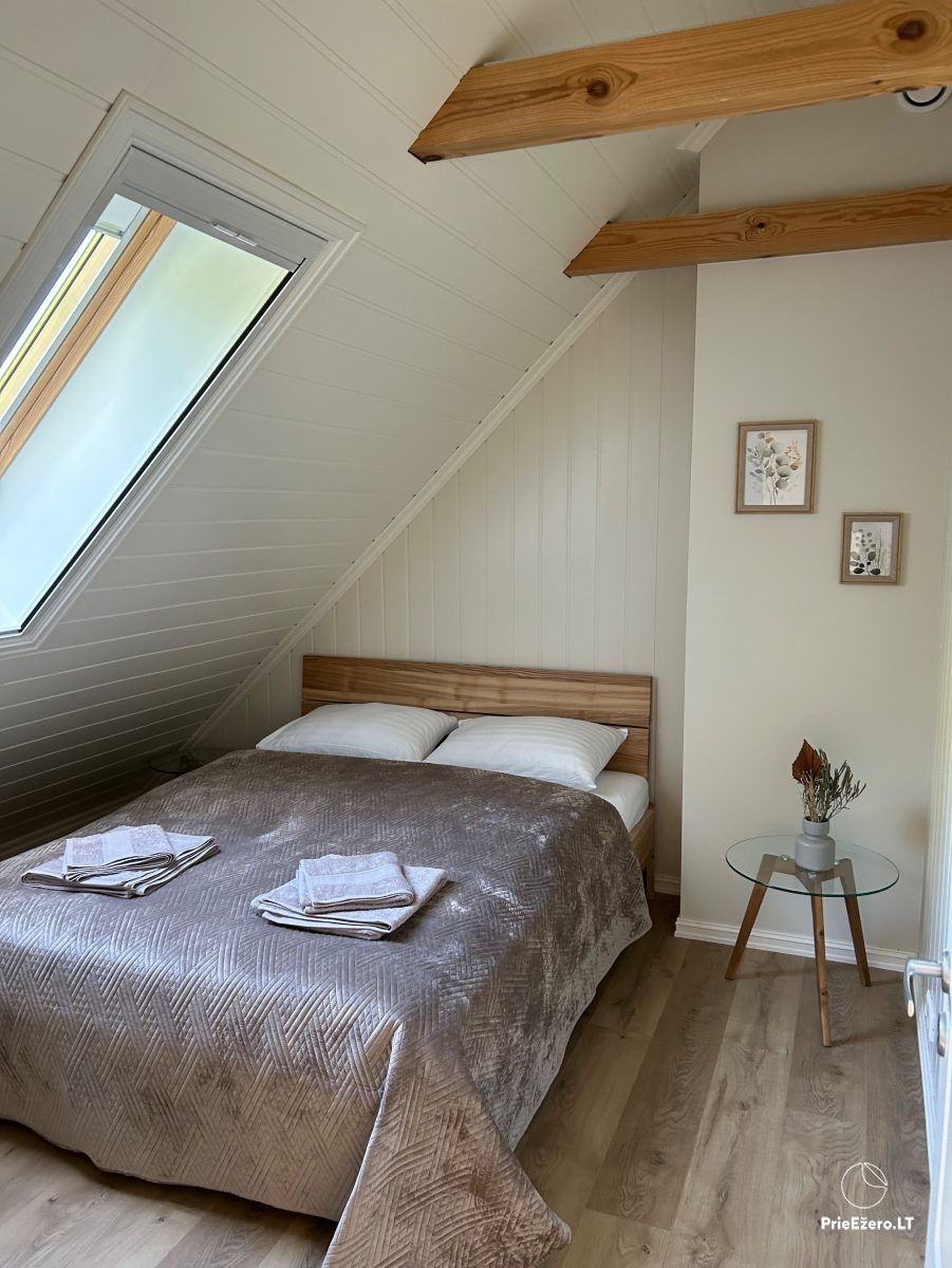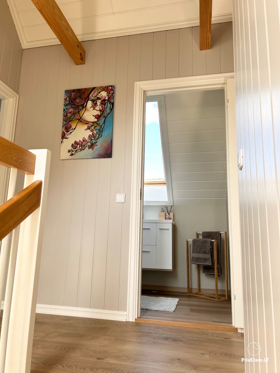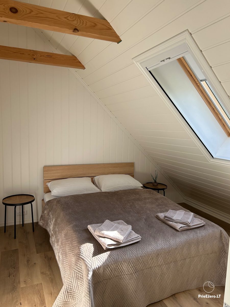 Dviejų aukštų, 180 m² namas, talpinantis iki 16 svečių.