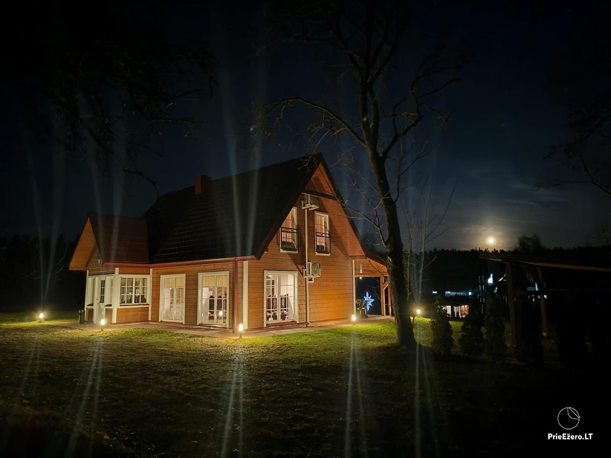 - Namą, kuriame prie ovalaus stalo gali sėdėti 18 asmenų, 12 miegamųjų vietų.