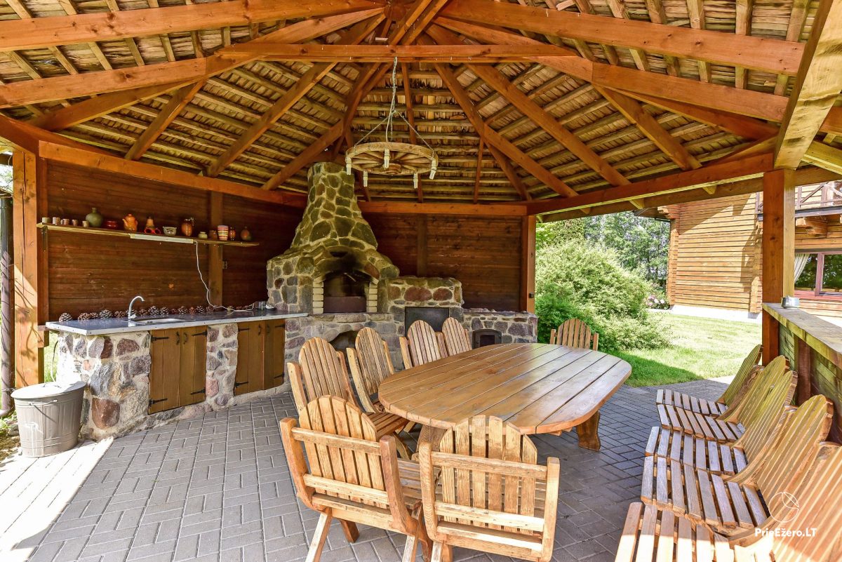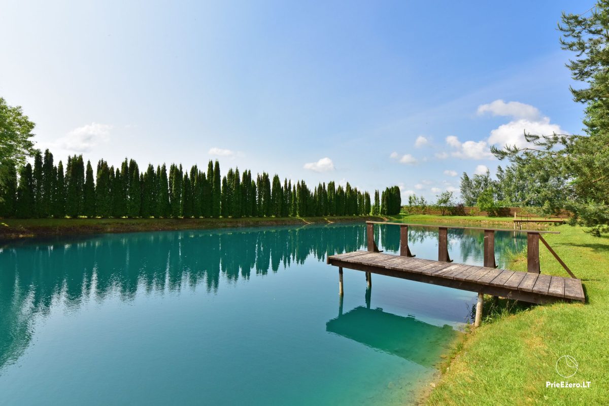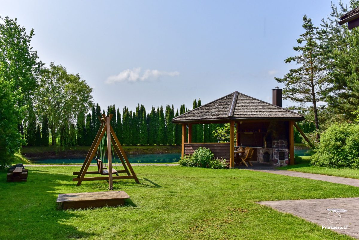 Kieme didelė aptverta teritorija, pavėsinė, pirtis, tvenkinys, lauko kubilas, vaikų žaidimo aikštelė.
