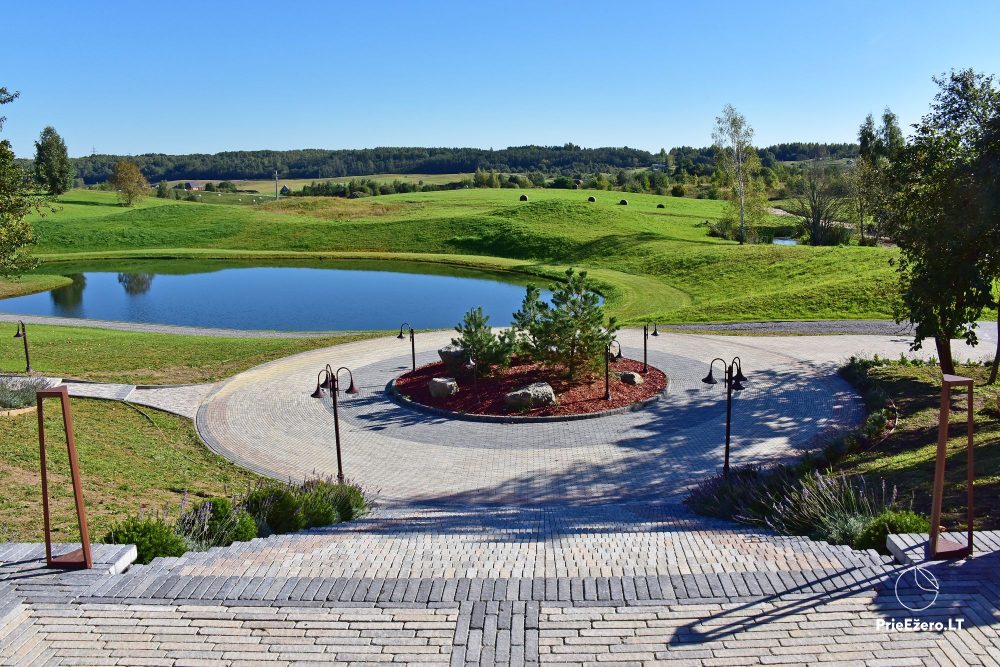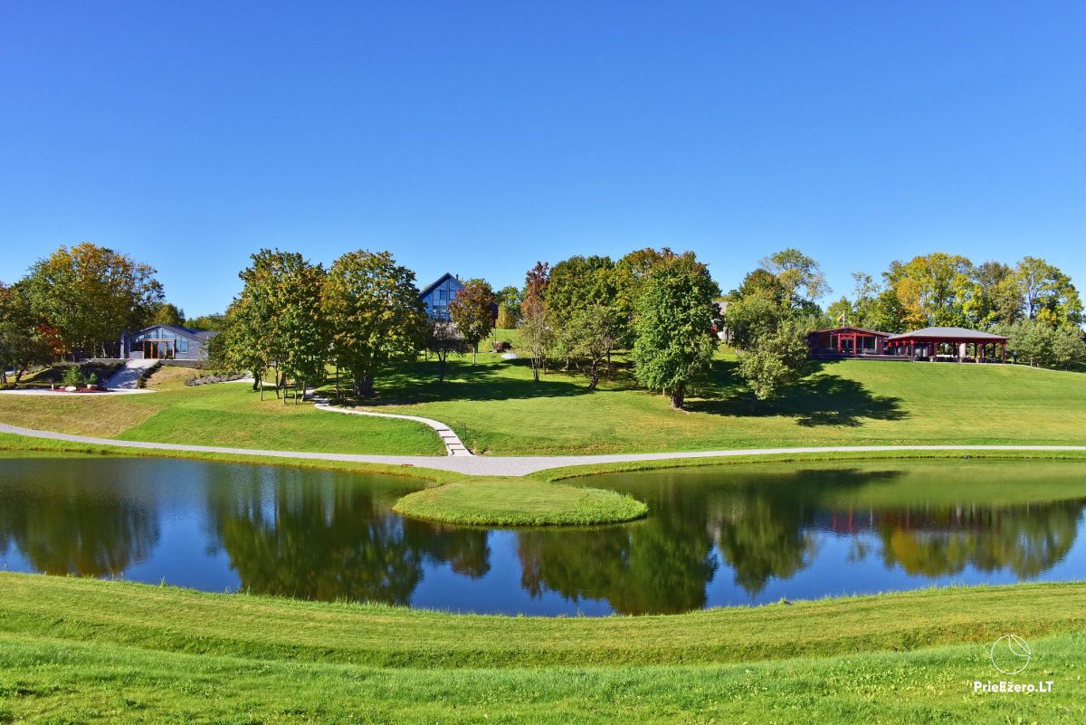 Teritorijoje yra: vestuvių ceremonijos vieta - obelų sodas, vietos, kuriose galimos fotosesijos, didelė lauko terasa su stogų, maudynių vieta, tinklinio aikštelė, Wake vandens parkas, tinklinio aikštelė, amfiteatras, parkas su pasivaikščiojimo takeliais, akmenų labirintas.