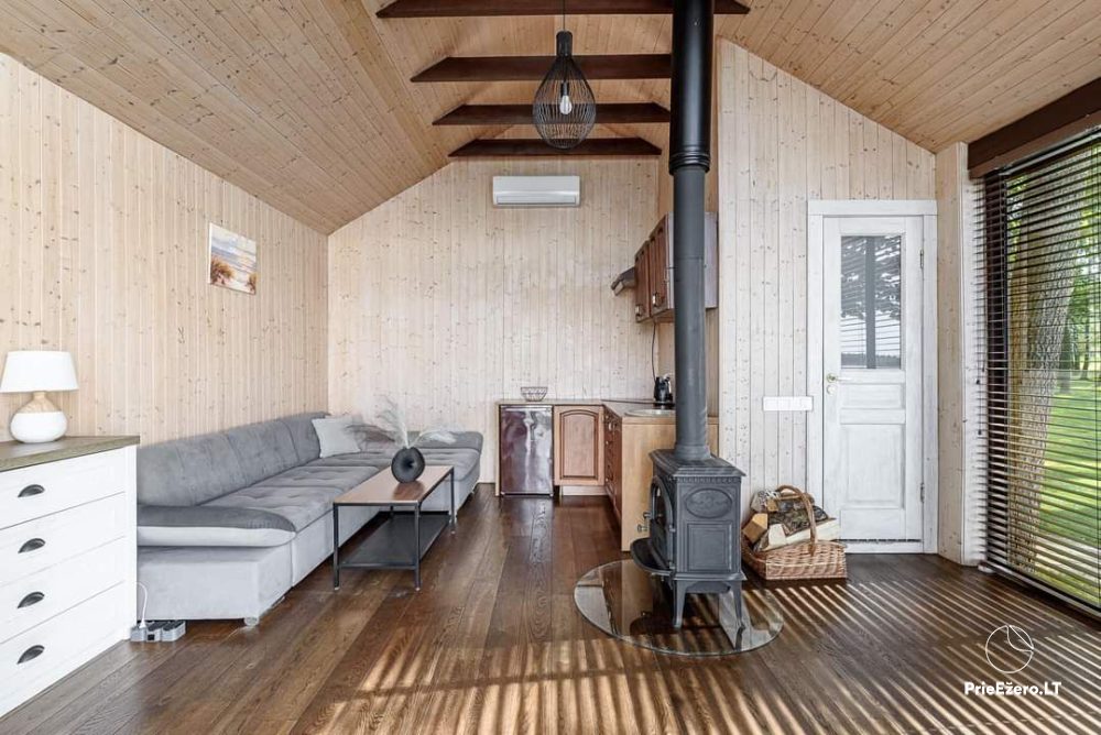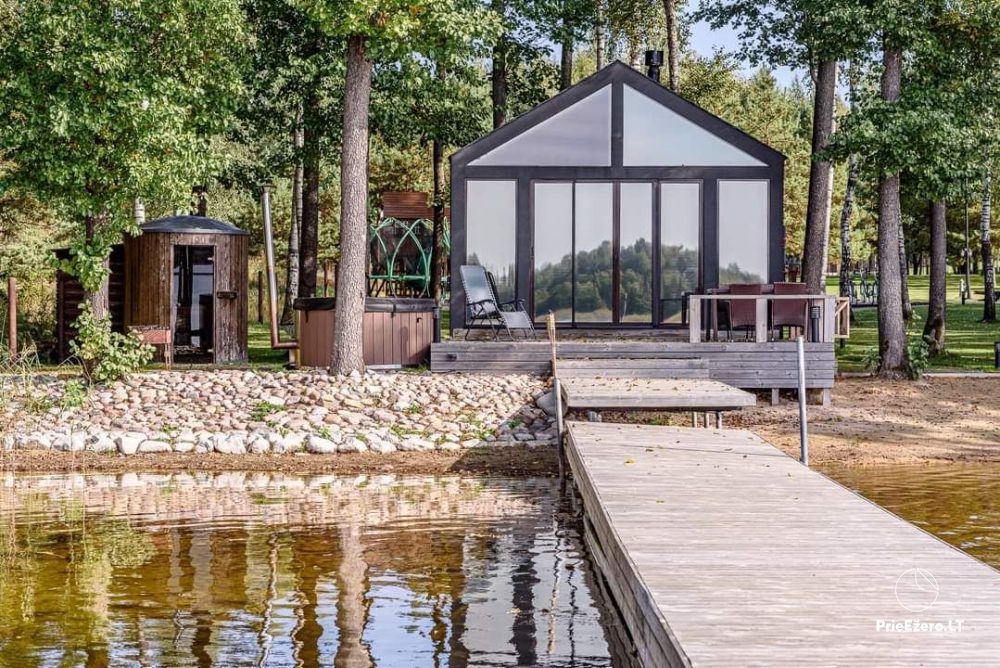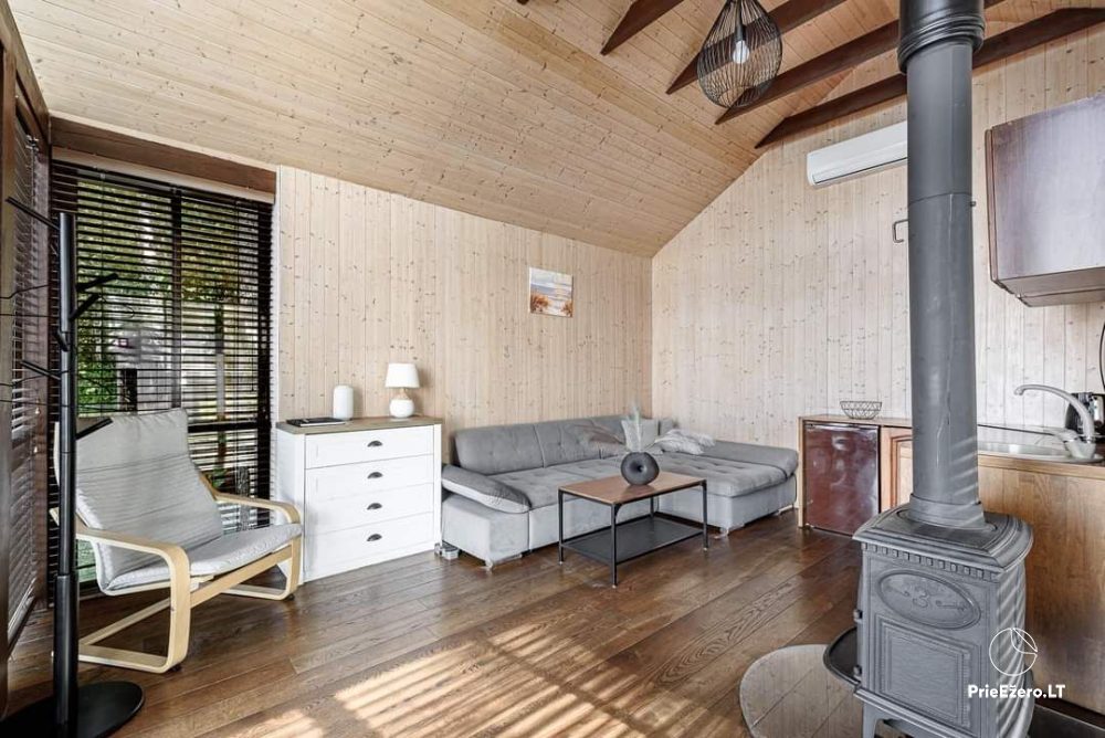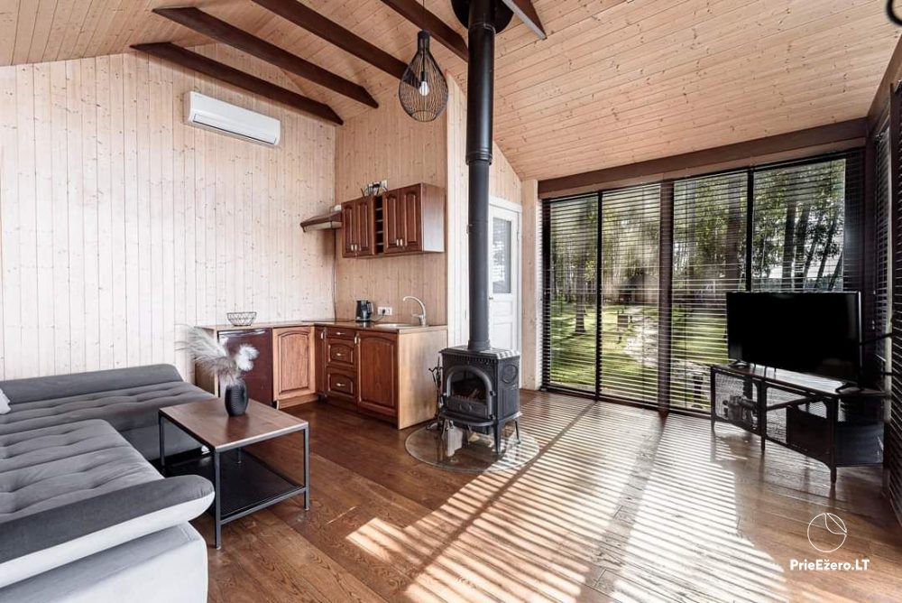 Nuomojami naujai pastatyti namukai ant ežero kranto Molėtuose.
