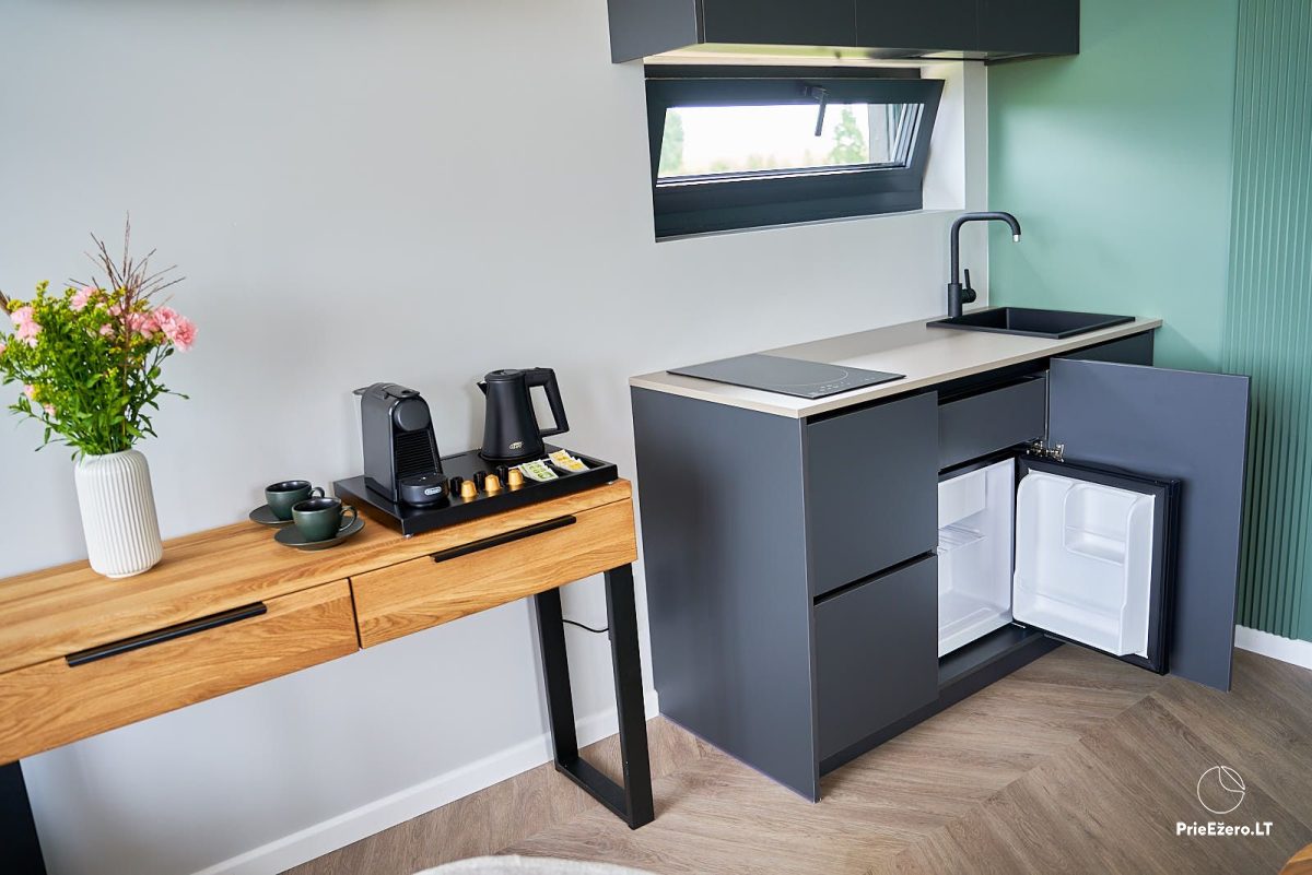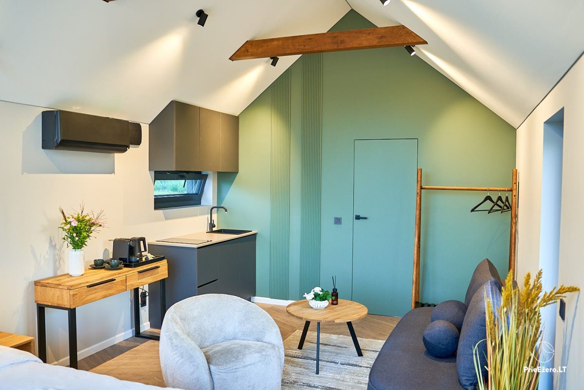 Taip pat - TV, garso kolonėlė, greitas Wi-Fi, stilingas poilsio kampelis darbui ar vyno vakarui.