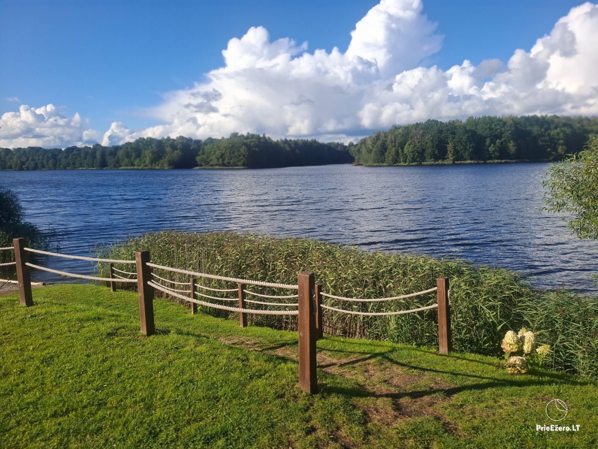 Nuostabios gamtos apsuptyje prie didžiulio tvenkinio nuomojamas jaukus, su visais patogumais šeimyniniam poilsiui nemelis.