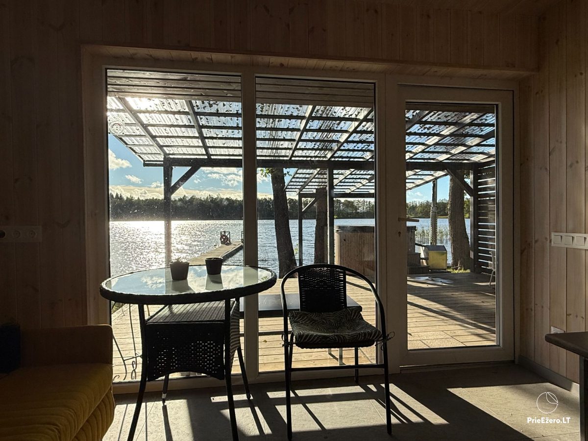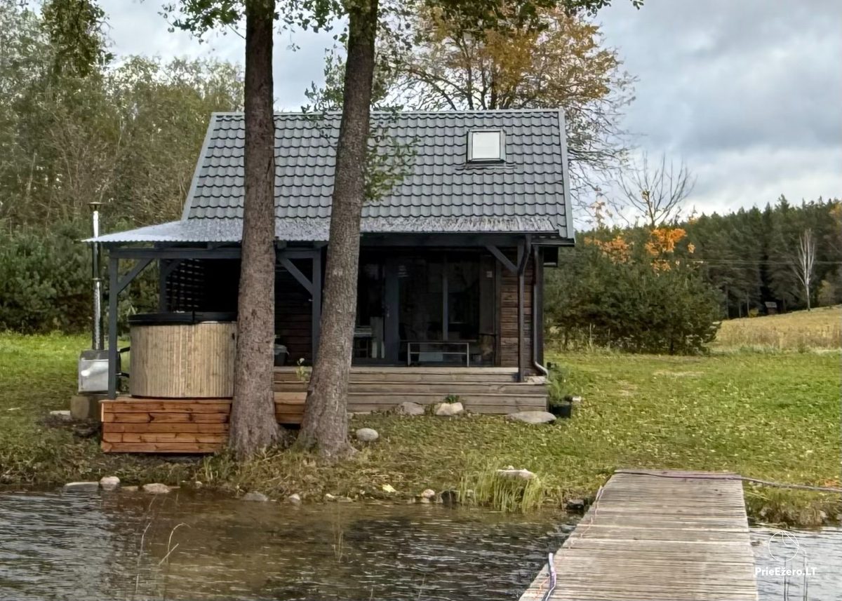 Išnuomojame jaukų 3-4 vietų namelį su malkine pirtimi ir 4-6 vietų hidromasažiniu kubilu pačioje Saločiaus ežero pakrantėje.