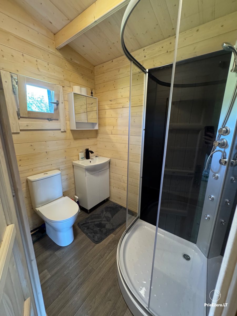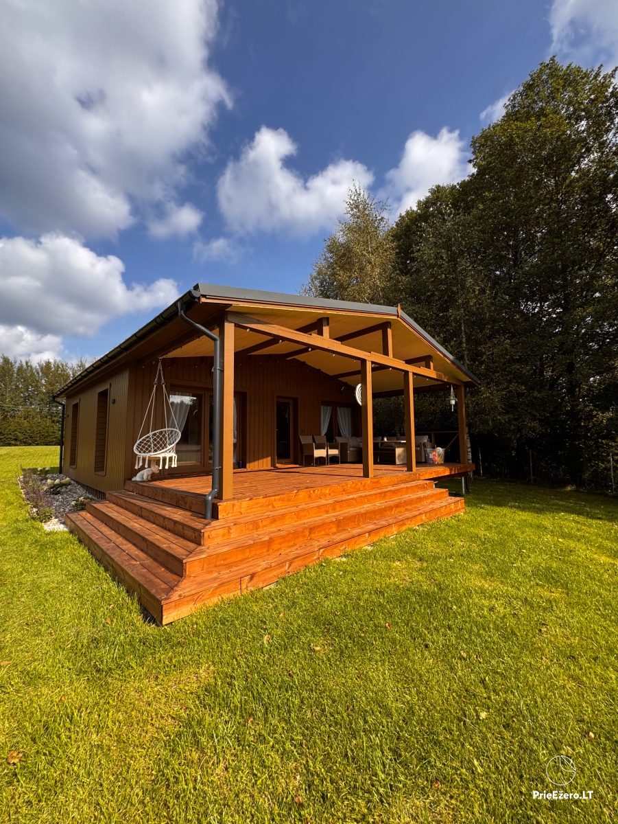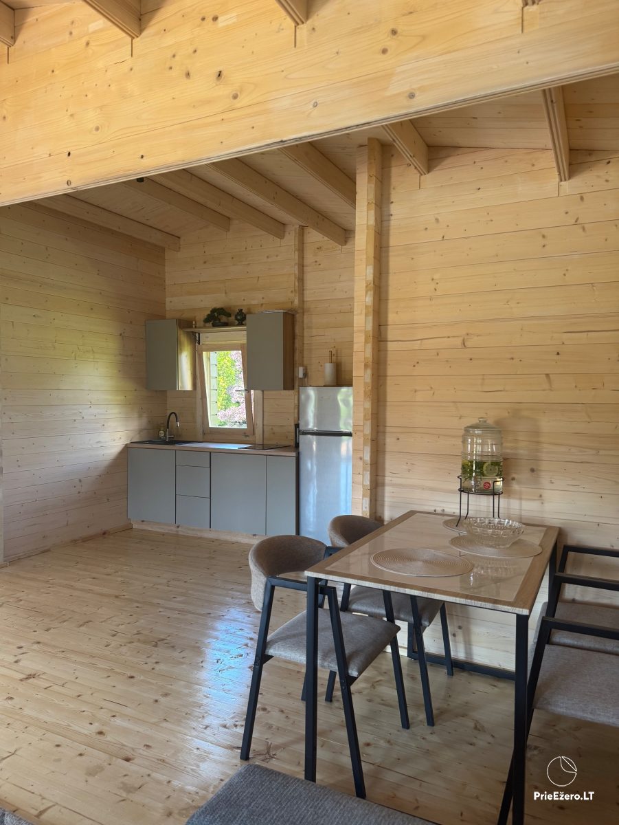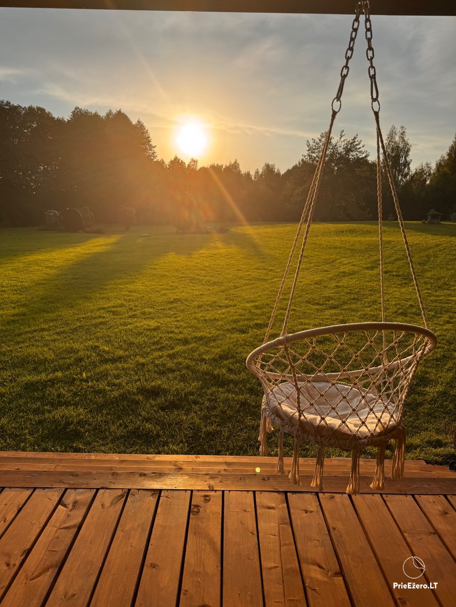 Namelyje yra du miegamieji, ir svetainė kartu su virtuve, talpina iki 6 žmonių, didelėje terasoje galėsite leisti šiltus vakarus, o orams atvėsus visada galėsite pasikurti pirtelę ir išokti į upelį nuo lieptelio.