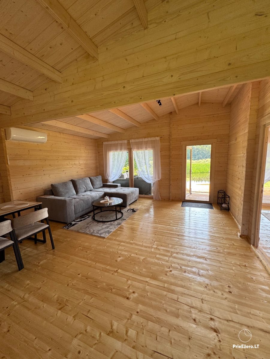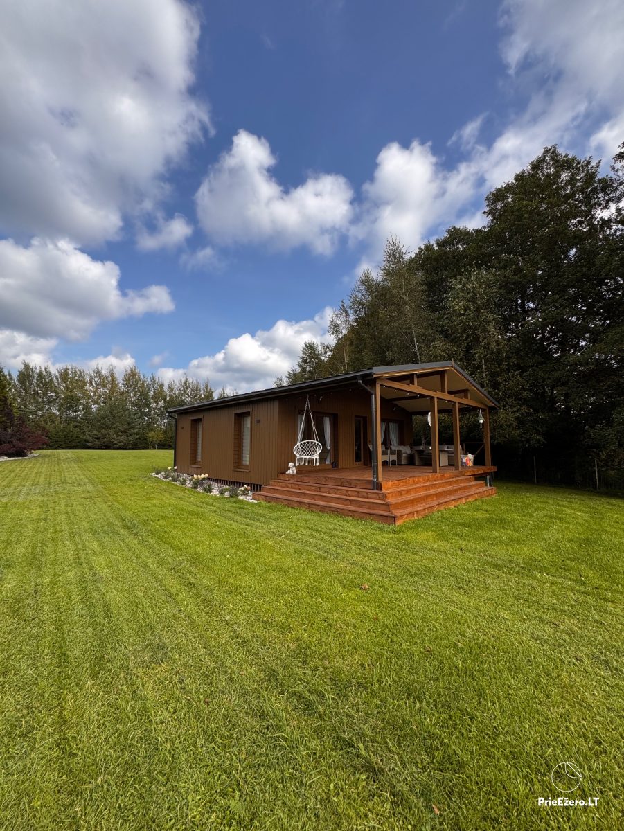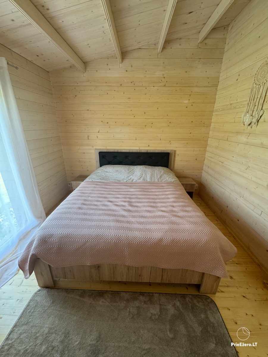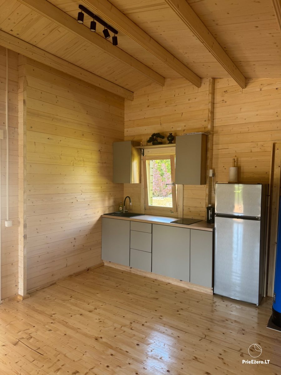 Namelyje yra du miegamieji, ir svetainė kartu su virtuve, talpina iki 6 žmonių, didelėje terasoje galėsite leisti šiltus vakarus, o orams atvėsus visada galėsite pasikurti pirtelę ir išokti į upelį nuo lieptelio.
