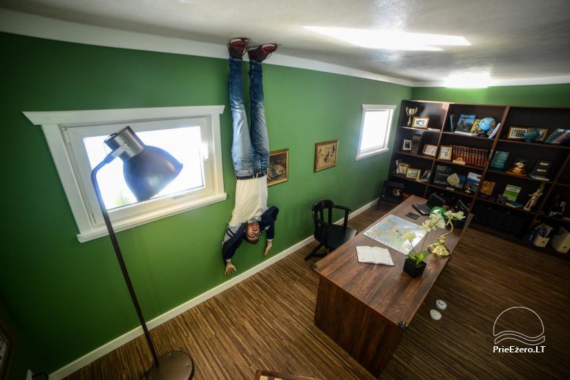 Rengdami konferenciją viloje, galėsite mėgautis privačiu kiemeliu, raminančiu vaizdu į tvenkinį bei medžius. Tvenkinyje – privati sala, kuri puikiai tiks komandos formavimo užduotims gryname ore ar kitoms veikloms. Šalia salės įrengta atskira virtuvėlės - atsipalaidavimo zona su patogia vieta prisėsti, idealiai tinkanti kavos pertraukėlėms.