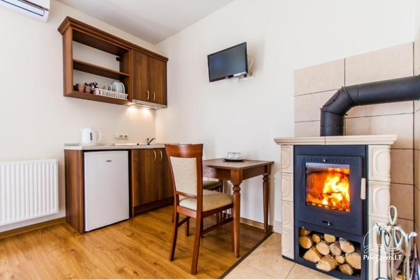 Apartamentuose yra mini-virtuvėles su visa būtina įranga bei šaldytuvais.