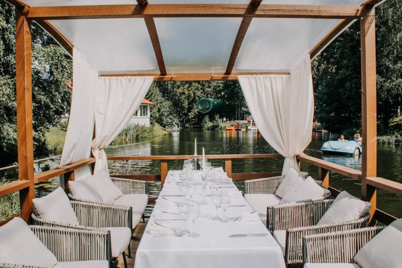 - Privati tvenkinio sala, kurią su vilos kiemeliu jungia romantiškas tiltas. Sala idealiai tinka vestuvių ceremonijai, fotosesijai, įvairiems žaidimams.