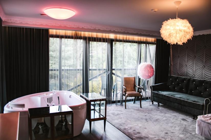 - Kambariai, apartamentai, poilsiui, taip pat liuksai su sūkurinėmis voniomis (Jacuzzi)