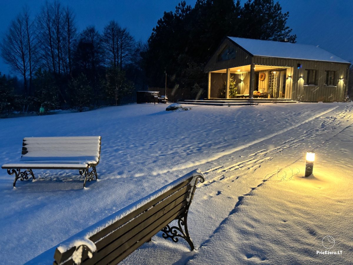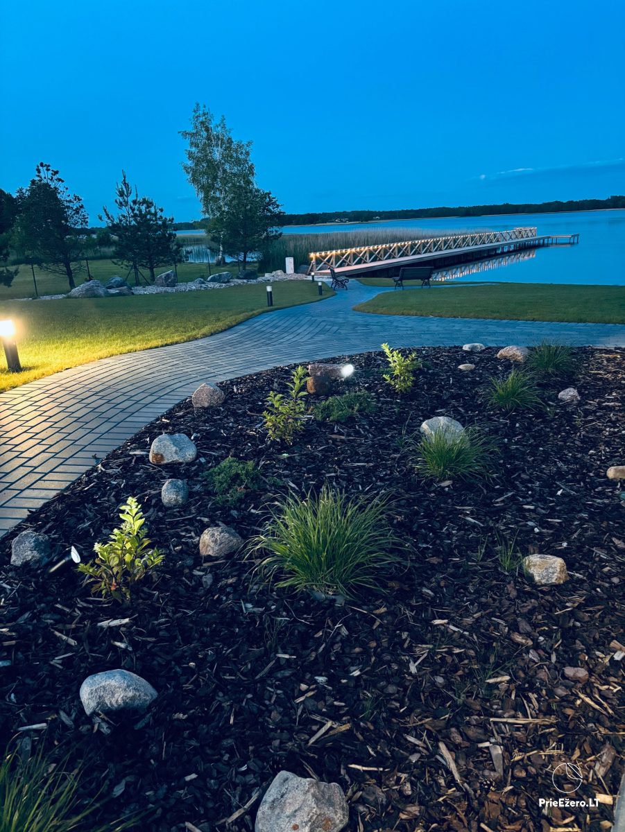 Ryte ežeras pasitiks lengva migla, dieną – rasite erdvės tiek ramiam poilsiui, tiek aktyviam laisvalaikiui, o vakare galėsite ilsėtis kubile klausydami bangelių garsų po Molėtų žvaigždėtu dangumi.