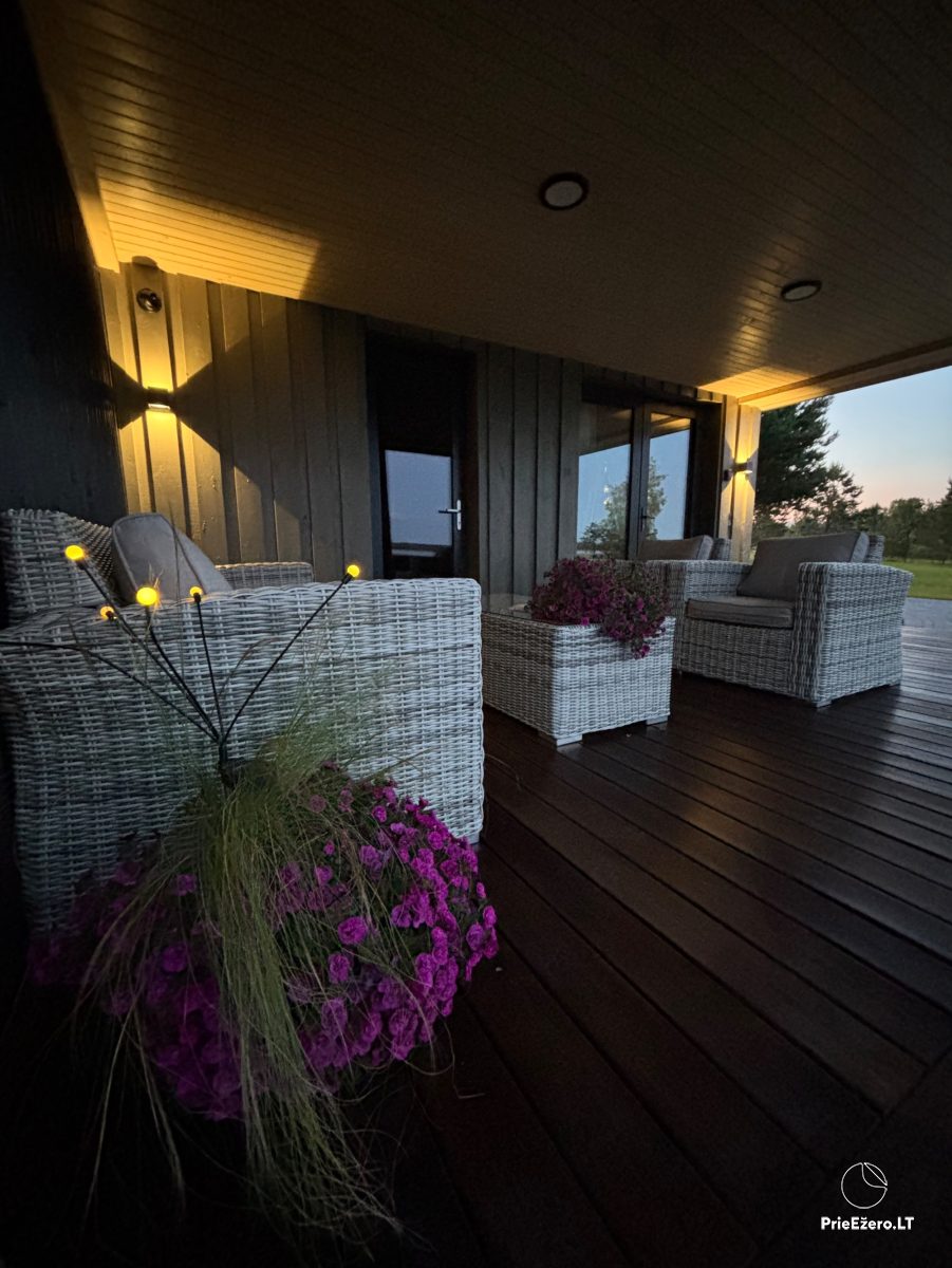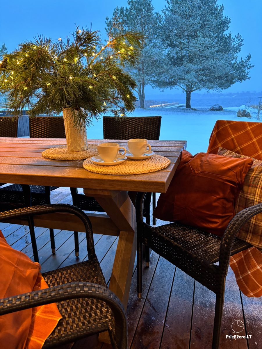 – Erdvi terasa su kubilu ežero pakrantėje.