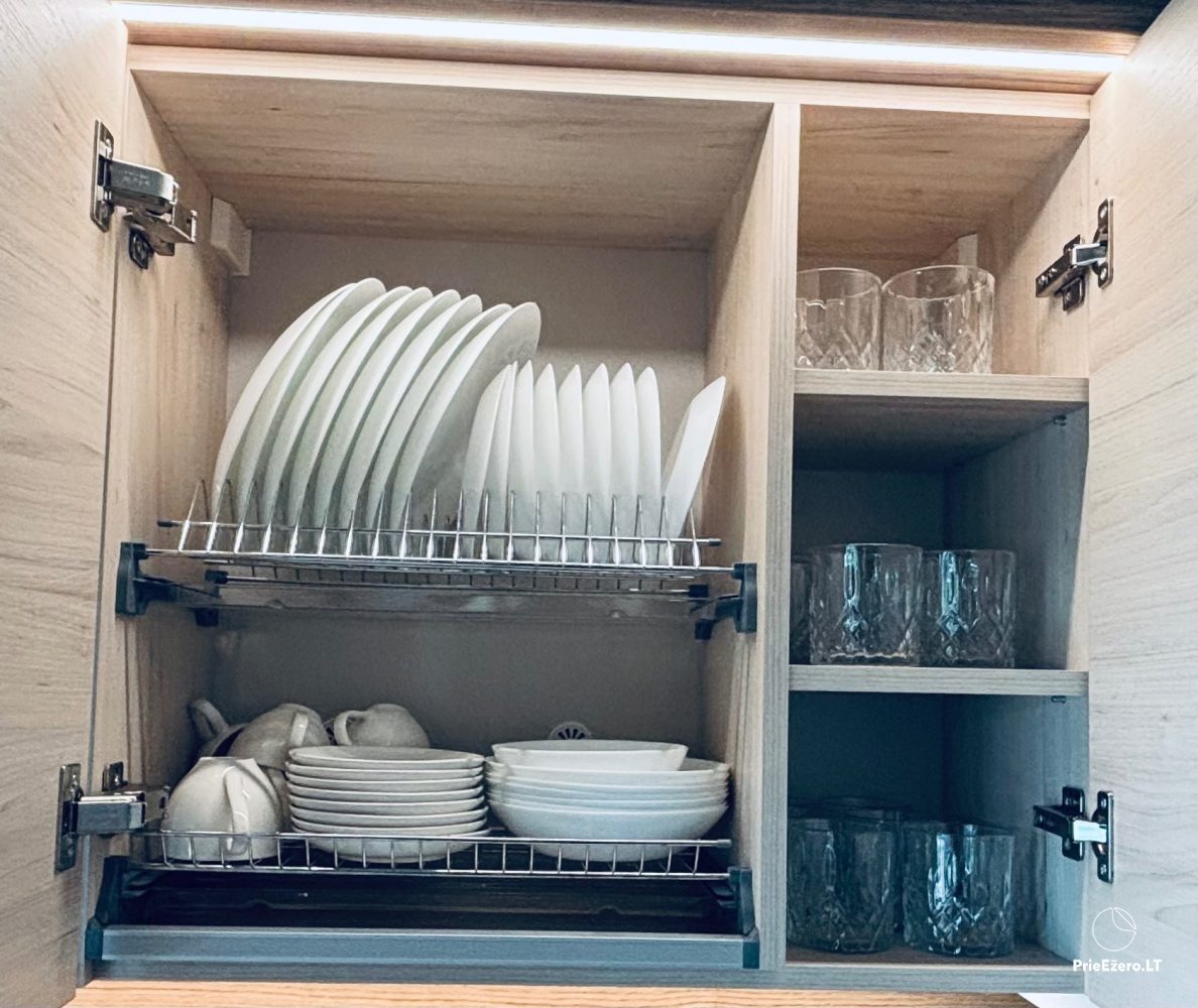 – Televizorius, šaldytuvas, kavos aparatas, kaitlentė, indaplovė, skalbimo mašina, patalynė ir rankšluosčiai, WiFi internetas, šildomos grindys!