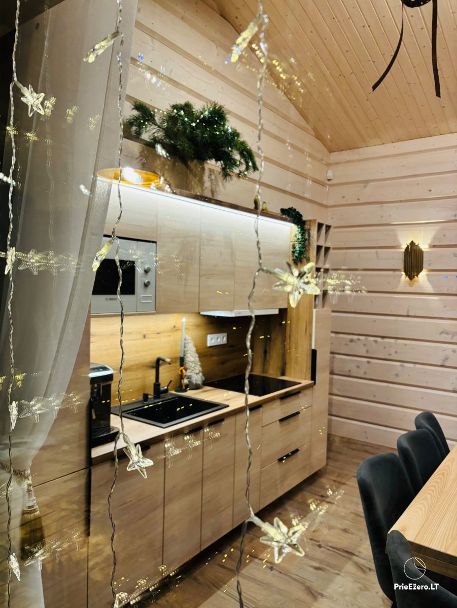 – Virtuvėlė su mini svetaine, kavos aparatu, šaldytuvu, kaitlente, televizoriumi, patalyne ir rankšluosčiais, WiFi internetas, šildomos grindys!