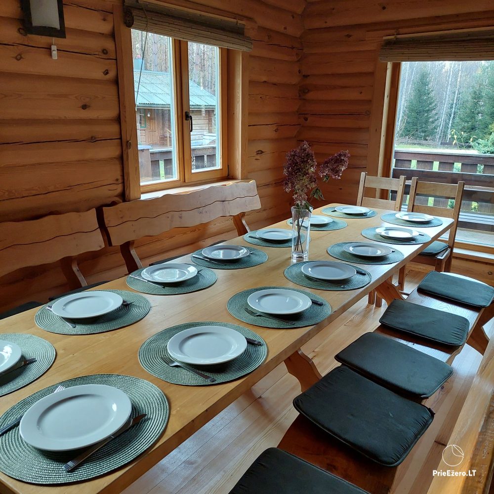 Jaukus rąstinis namas, nakvynei talpinantis iki 14 poilsiautojų, yra su visais patogumais, TV, virtuvėje būtina buitine technika, indais.