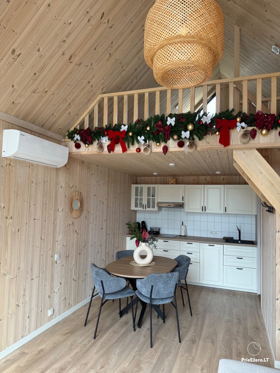 Tai - jaukūs du nameliai, kurie laukia Jūsų pušų apsuptyje, šalia vandens telkinio su privačiu paplūdimiu.