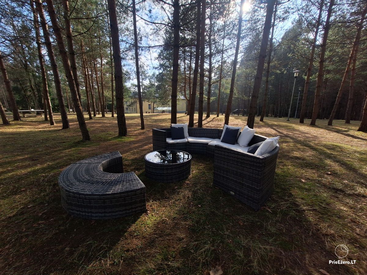 Mūsų prioritetas yra suteikti Jums galimybę suderinti darbą ir poilsį ar rengti asmenines šventes gamtos apsuptyje. Vietoje galima išsinuomoti visą reikiamą inventorių darbui ir poilsiui gamtoje.