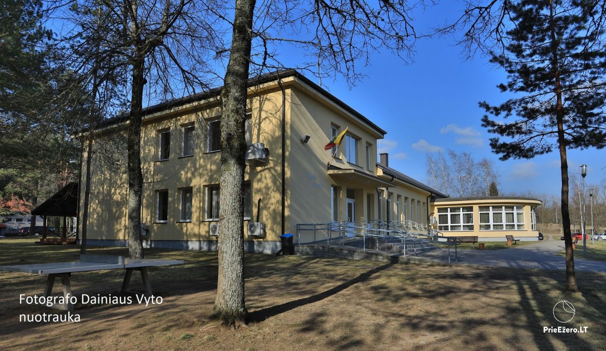 • Apgyvendinimas: apgyvendinti galime iki 70 žmonių bendrabutyje. Pastate įrengti 2-4 vietų kambariai, yra dušai. Stovyklavietėje: gali apsistoti iki 150 žmonių su palapinėmis. Yra laužavietė, lauko dušai, šašlykinės.