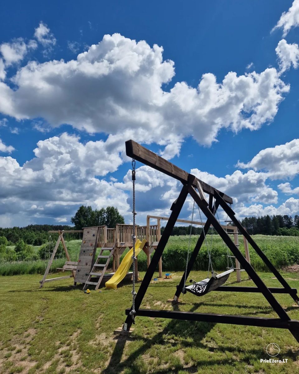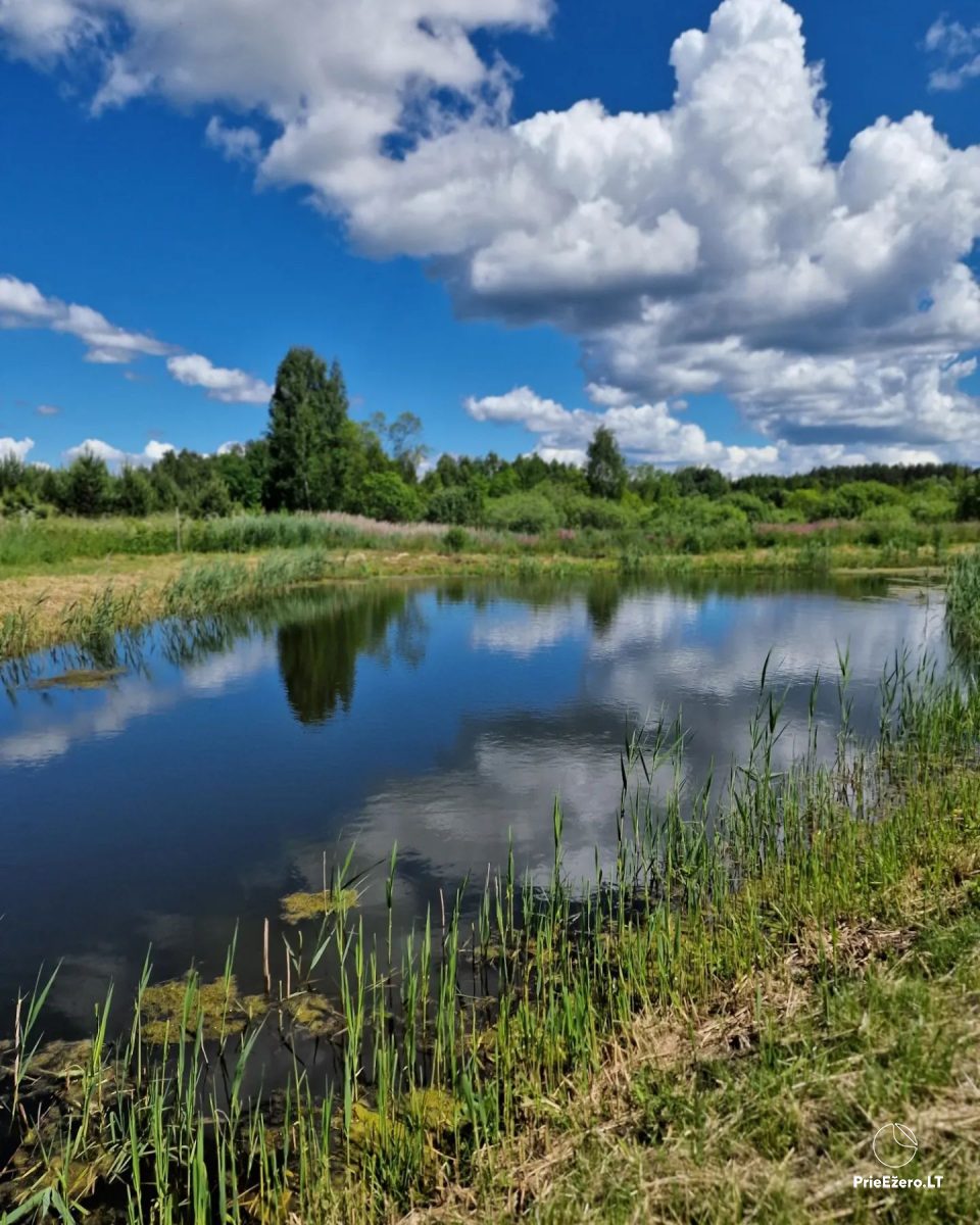 Sodybos teritorijoje yra tvenkinys, o iki ežero su gera pakrante – vos 1 km pėsčiomis.