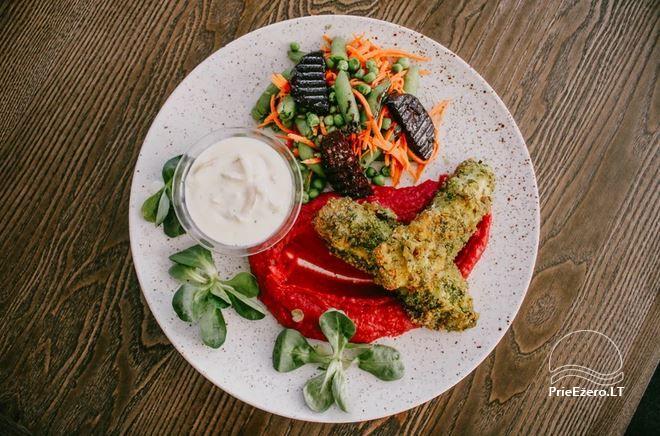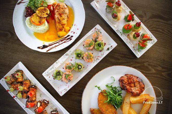 Profesionalūs restorano šefai pasirūpins užkandžiais, kava ir arbata bei gardžiais pietūmis ar vakariene pagal jūsų poreikį.